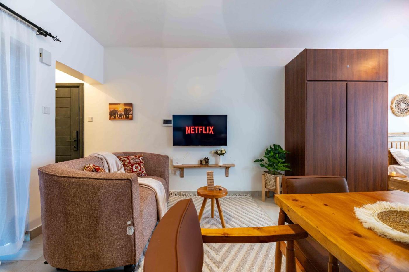 Lorien Homes isin Nairobi, 10 km from Nairobi National Museum, 1.8 km from Century Cinemax Junction, as well as 3 km from Ngong Racecourse. It is located 9.2 km from Kenyatta International Conference Centre and offers a lift. The apartment also provides free WiFi, free private parking and facilities for disabled guests.